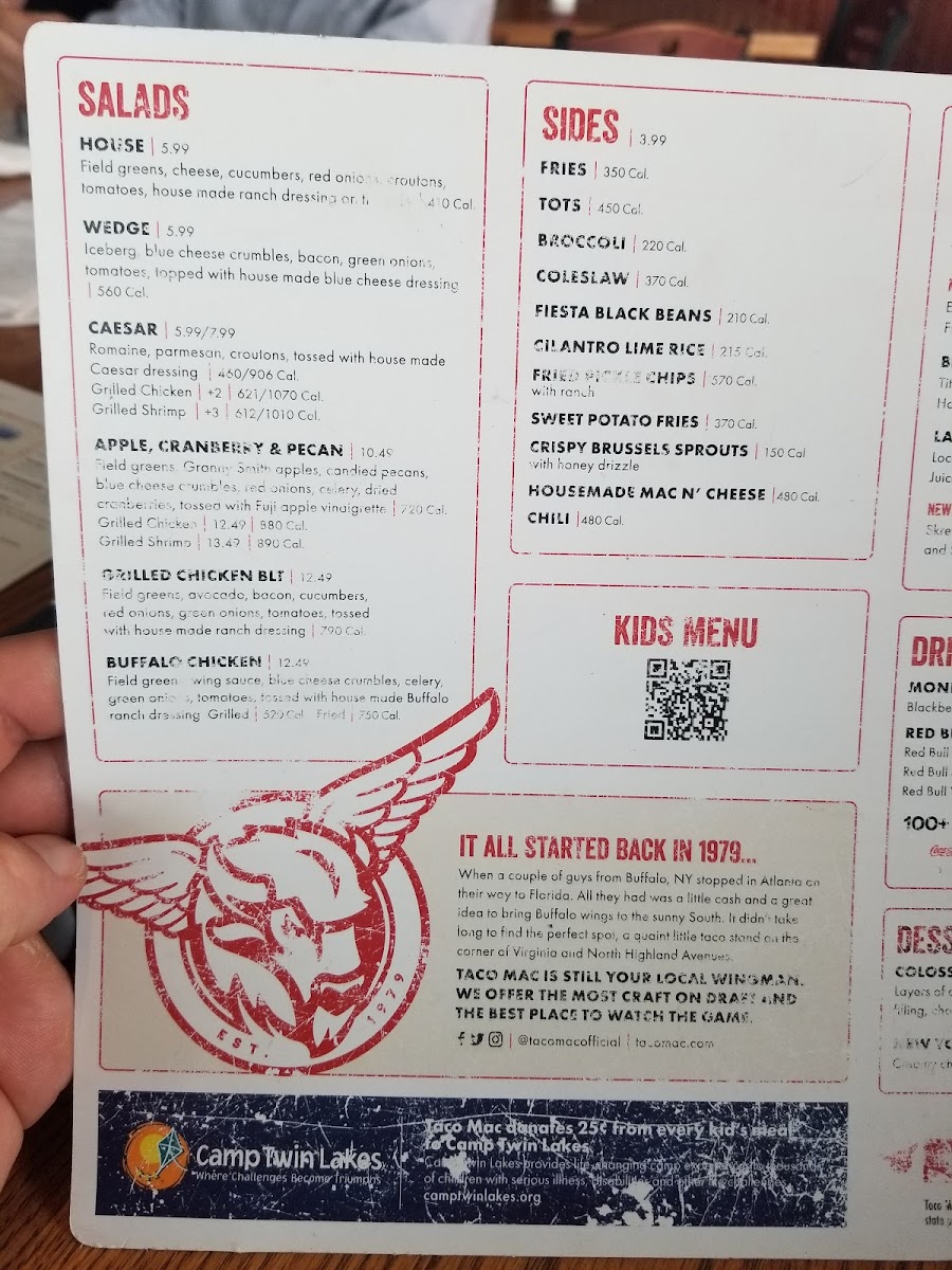 Welcome to Taco Mac Canton, located at 1810 Cumming Hwy Suite 1100, Canton, GA, a delightful destination for food lovers. Here, vibrant flavors take center stage, especially in their mouthwatering wings and famous chips and queso. The menu invites you to explore a variety of options, from fresh garden salads to creative appetizers like house-made ranch and blue cheese sauces, perfect for dipping your wings. A must-try dessert is the Triple Threat Chocolate Cake, a chocolate lover's dream.